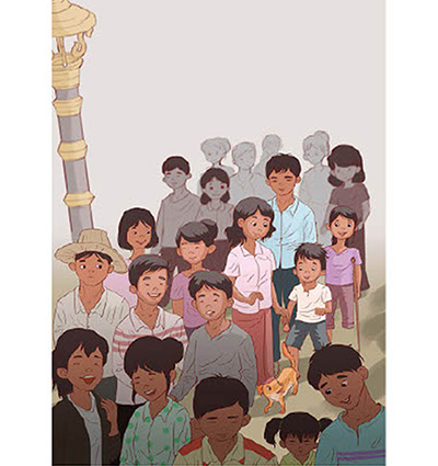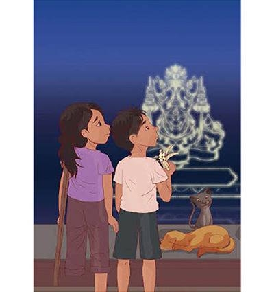 លីណា និង ដែន ឈរមើល គេ ប្រណាំង ទូក នៅ មុខវាំង។