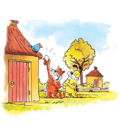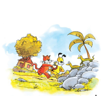 បងឆ្មា និងបងឆ្កែក៏ដើរទៅរកចាប ហើយសួរថា