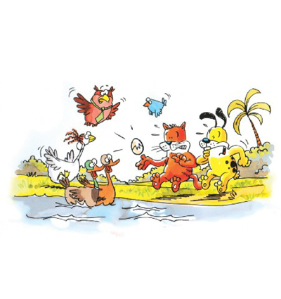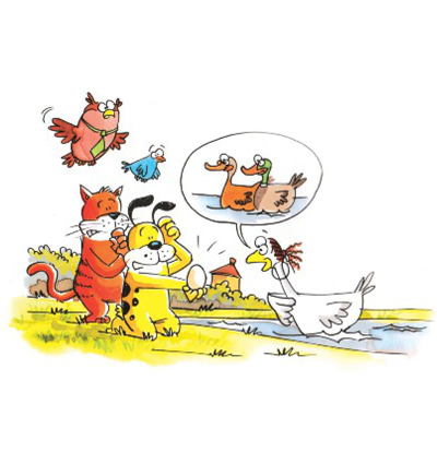 បងឆ្មា និងបងឆ្កែក៏ដើរទៅរកក្ងាន