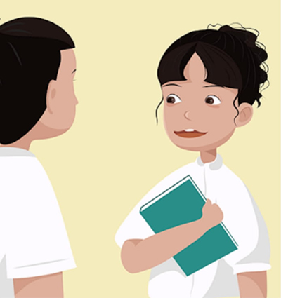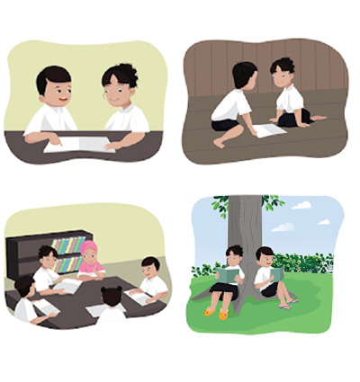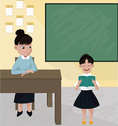 អ្នកគ្រូ៖ សាលាយើងនឹងមានការប្រកួតអំណានជាក្រុម។ ប្រសិនបើកូនណាចង់ចូលរួមប្រកួត