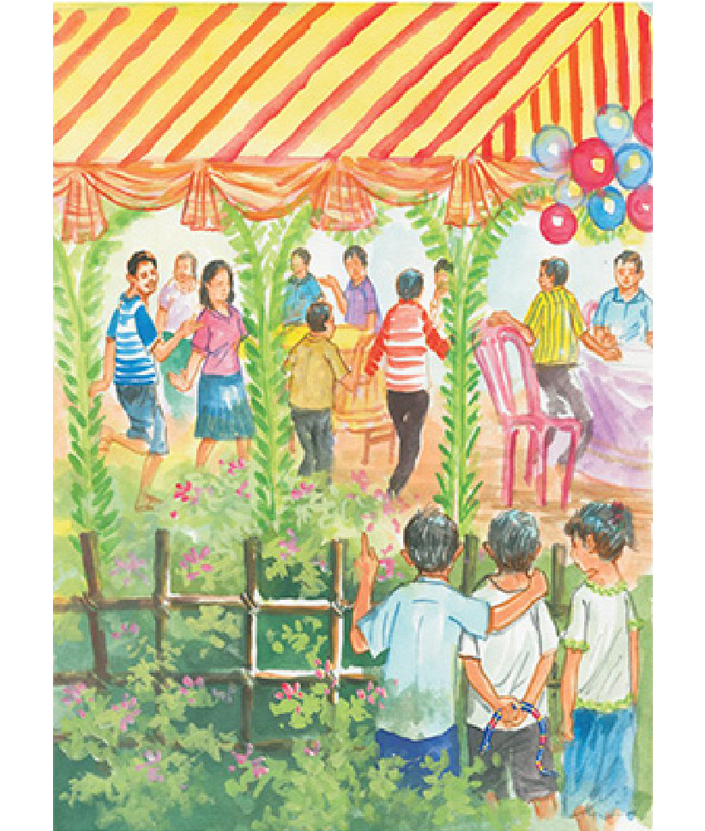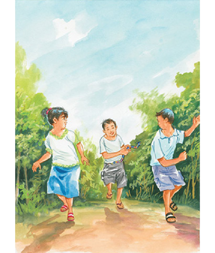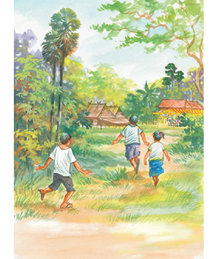 ឆើតក៏ស្រែក៖ "ពស់! ពស់!" ។ តី និងណាល់ខ្លាច ហើយរត់យ៉ាងលឿន ។