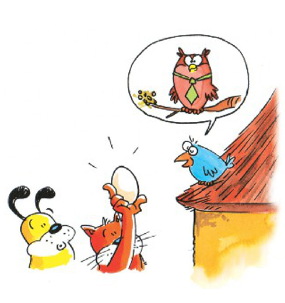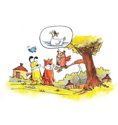 បងឆ្មា និងបងឆ្កែក៏ដើរទៅរកទីទុយ ហើយសួរថា៖