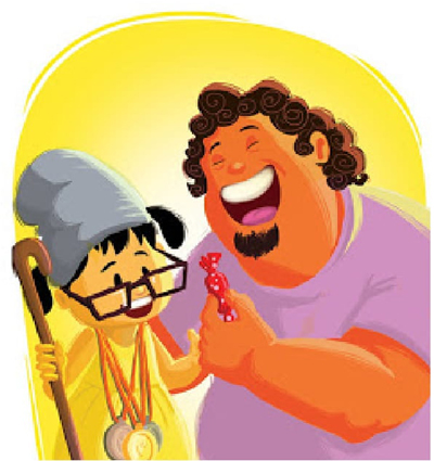 "ខ្ញុំគឺជាជីតារបស់ ទូទូ។ សូមឱ្យស្ករសូកូឡាមួយមកខ្ញុំ"។