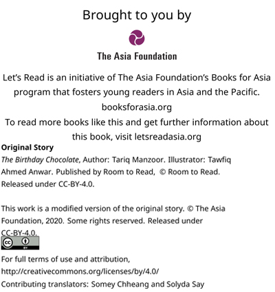 ហើយនិយាយថា " ថ្ងៃនេះជាថ្ងៃកំណើតមិត្តភក្តិរបស់កូន។ ម៉ាក់ជួយទិញសូកូឡាឱ្យកូនផង "។