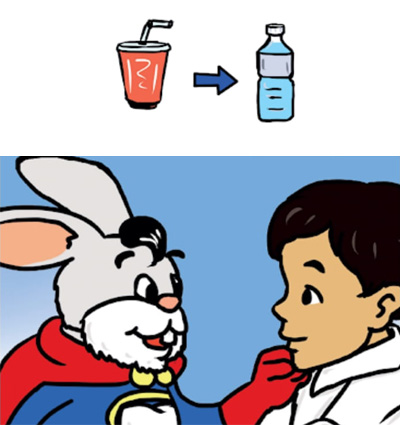 ប្អូនត្រូវប្តូរពីស្ករគ្រាប់ទៅញ៉ាំផ្លែឈើ ហើយពីទឹកក្រូចកំប៉ុង ទៅទឹកធម្មតាវិញ។