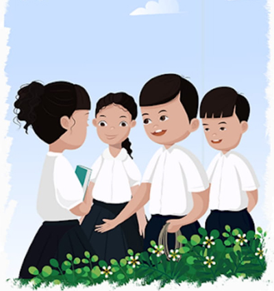 អ្នកគ្រូ៖ សាលាយើងនឹងមានការប្រកួតអំណានជាក្រុម។ ប្រសិនបើកូនណាចង់ចូលរួមប្រកួត