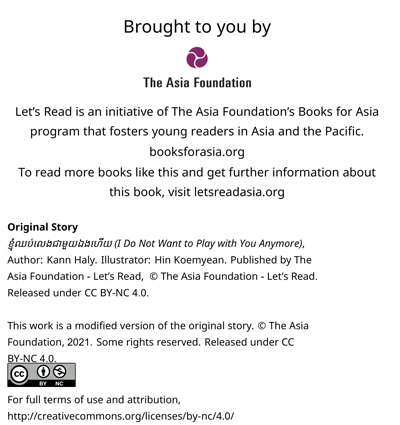 ខ្ញុំចង់ទៅបណ្ណាល័យអានសៀវភៅវិញ។